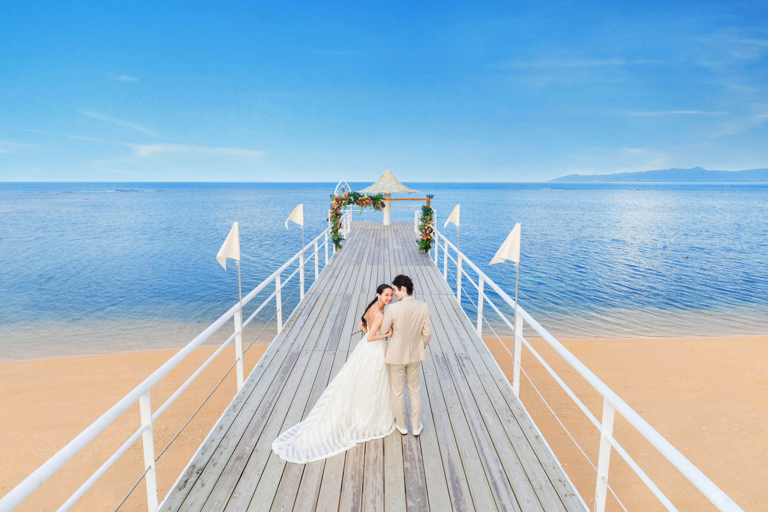 空と海と太陽に抱かれたカップルの聖地「Fusaki Angel Pier」。ここにしかない抜群のロケーションでセレモニーを。